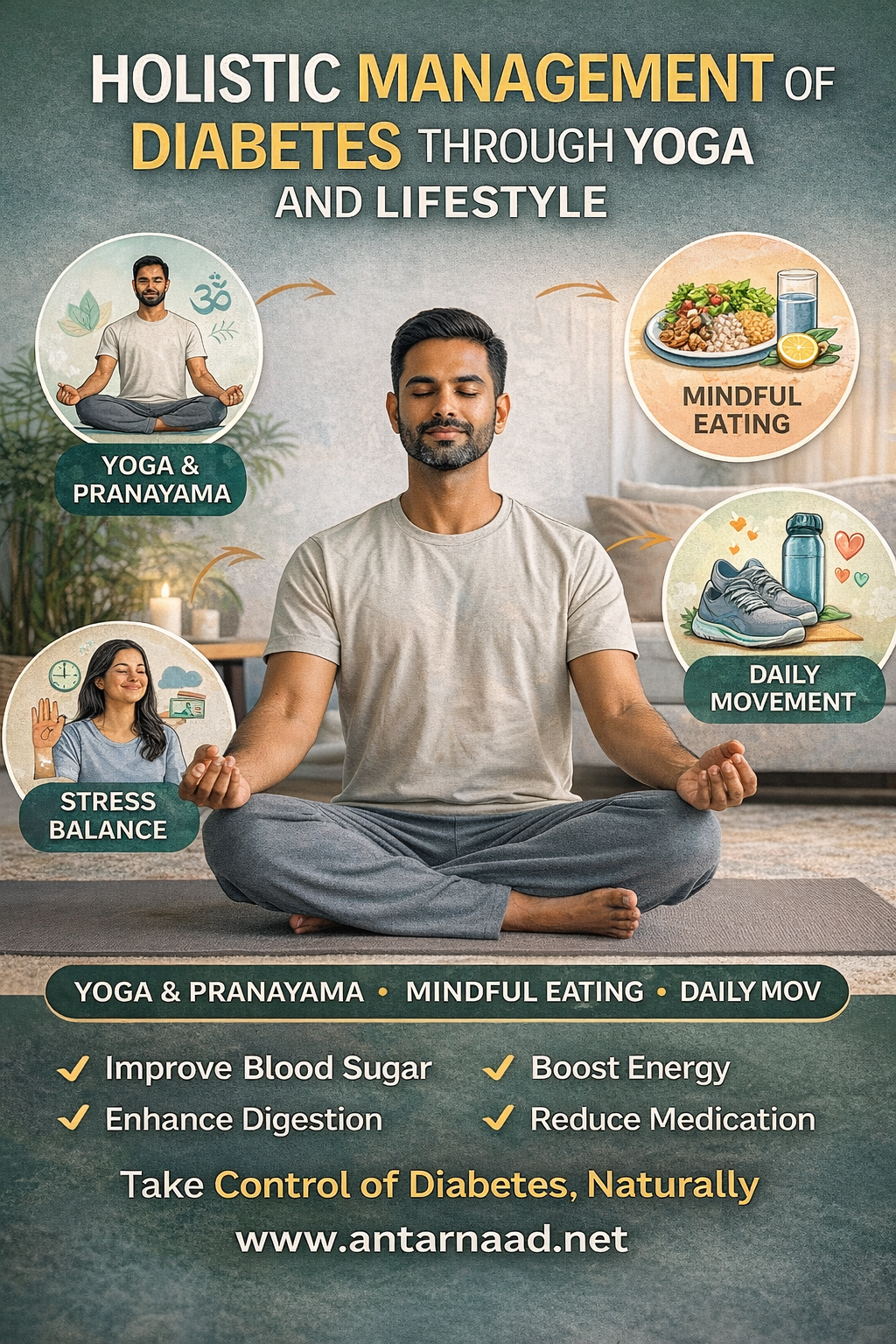 Managing diabetes doesn’t have to feel overwhelming. At Antarnaad, we focus on holistic wellness through yoga, lifestyle guidance, and mindful living — designed to support your medical care, not replace it.