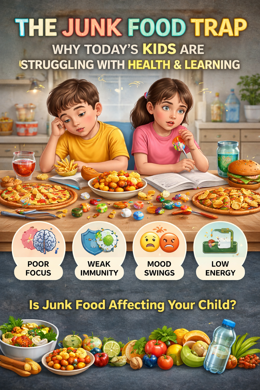 At first glance, a packet of chips or a sugary drink seems harmless. Busy parents, tired kids, quick fixes — junk food fits perfectly into modern life. But behind the bright packaging is a growing crisis affecting children’s physical health, brain development, attention span, and academic performance.
